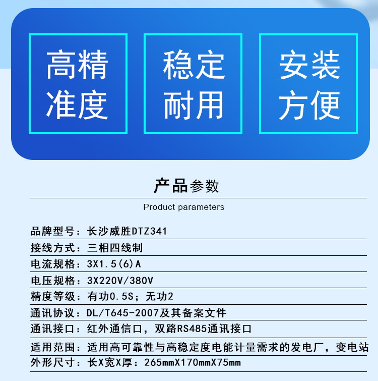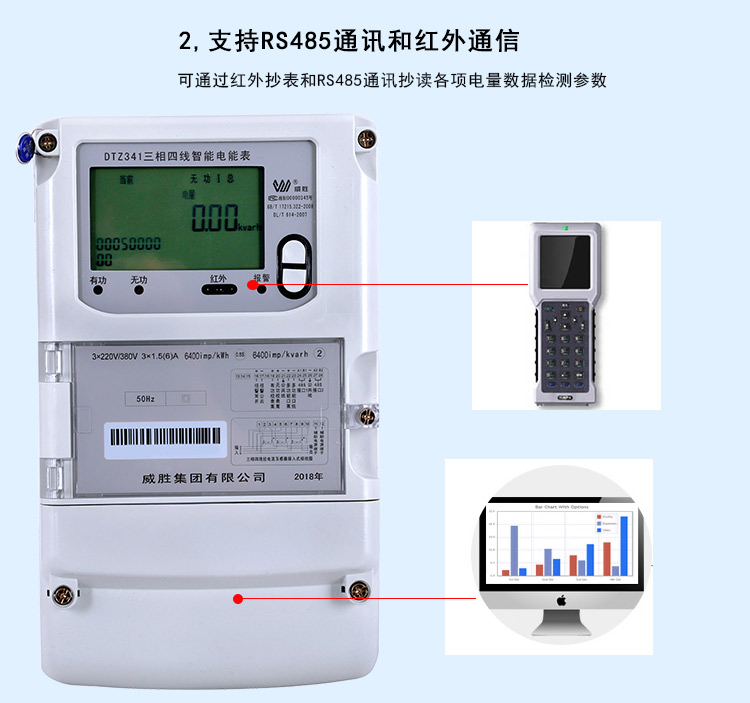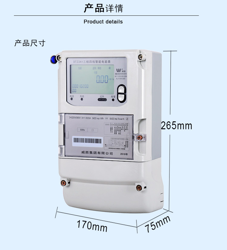 长沙威胜DTZ341三相四线智能多功能电表0.5S级1.5(6)A互感器电表