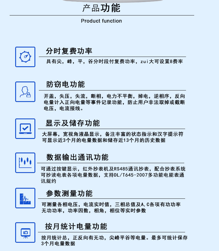 精度等级:有功:0.2S级、0.5S级、1级;无功:2级