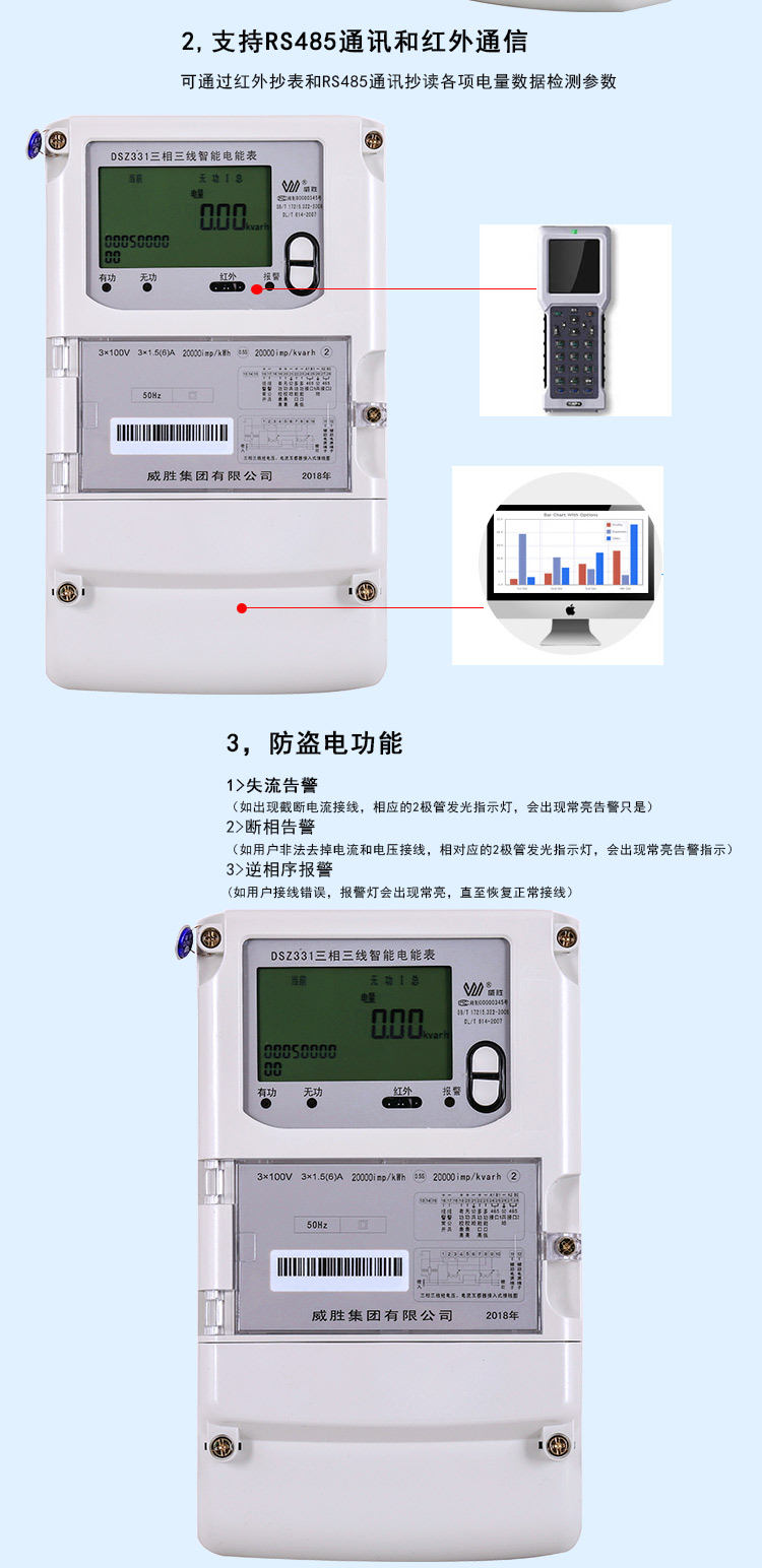通讯接口: 2路RS485接口;远红外通讯接口